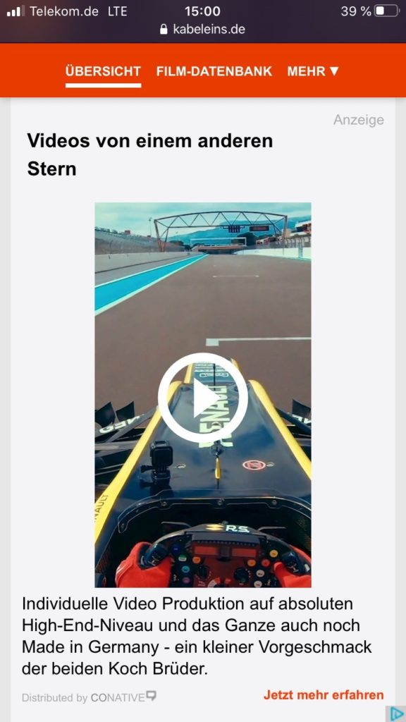 Bei der Variante CONATIVE Autoplay Video, verwenden wir statt der gewohnten Text-Bild-Kombination, die neue Möglichkeit der Text-Video-Kombination.