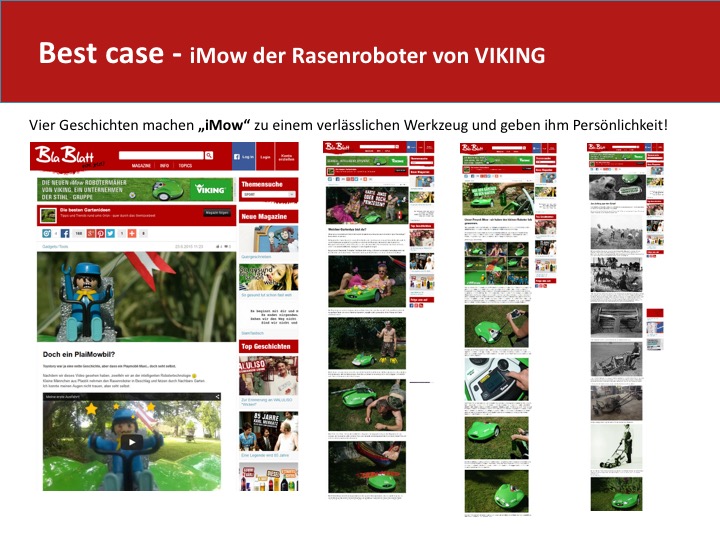 - Geschichten müssen authentisch wirken. Die Marke rückt aus dem Zentrum des Geschehens heraus und überlässt die Hauptrolle(n) z.B. den Konsumenten.