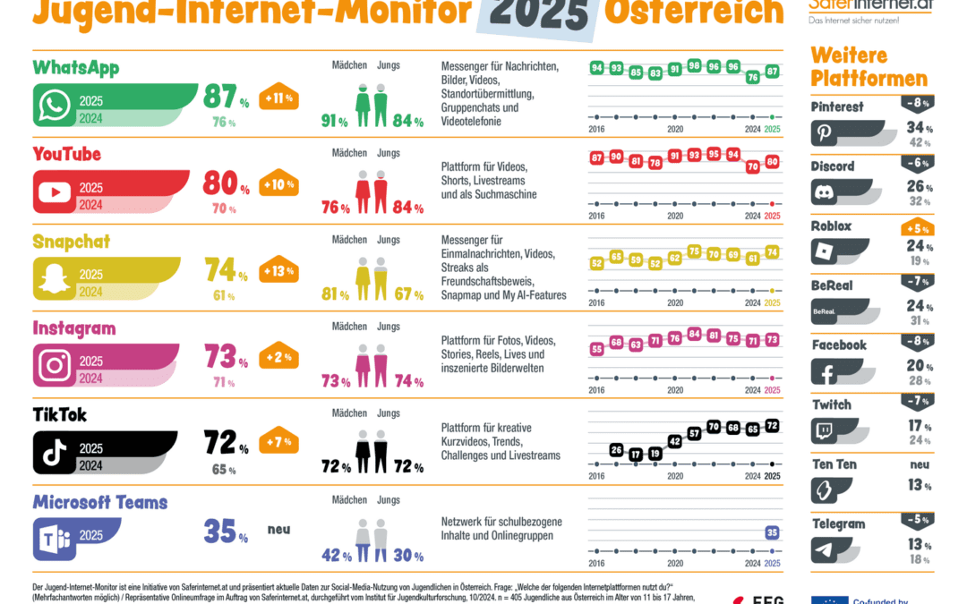 Die aktuellsten Details zur Social-Media-Nutzung der österreichischen Jugendlichen stehen fest. Im Jahr 2025 sind folgende Netzwerke voll im Trend: