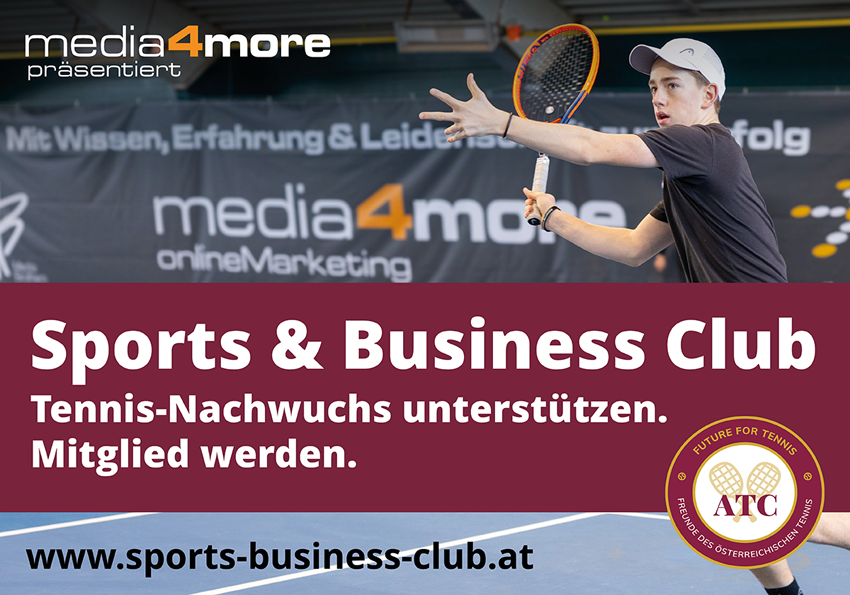 Der Sports & Business Club setzt gemeinsam mit media4more ein starkes Zeichen für die Förderung des heimischen Tennis-Nachwuchses. Von 5. bis 18. Jänner ist eine aufmerksamkeitsstarke Außenwerbe-Anzeige auf der A4 Richtung Flughafen Wien zu sehen. Ziel der Kampagne ist es, Unternehmen als Sponsoren und Förderpartner für junge österreichische Tennistalente zu gewinnen.